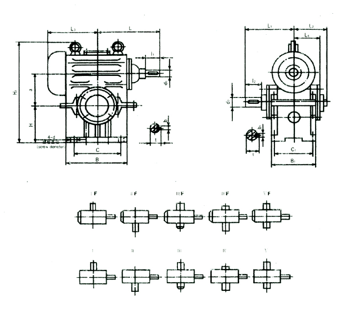 型號(hào) | a | L | L1 | L2 | L3 | L4 | H | H1 | B | B1 | C | C1 | d | d1 | d2 | b | b1 | t | t1 | I1 | I2 | 重量kg |