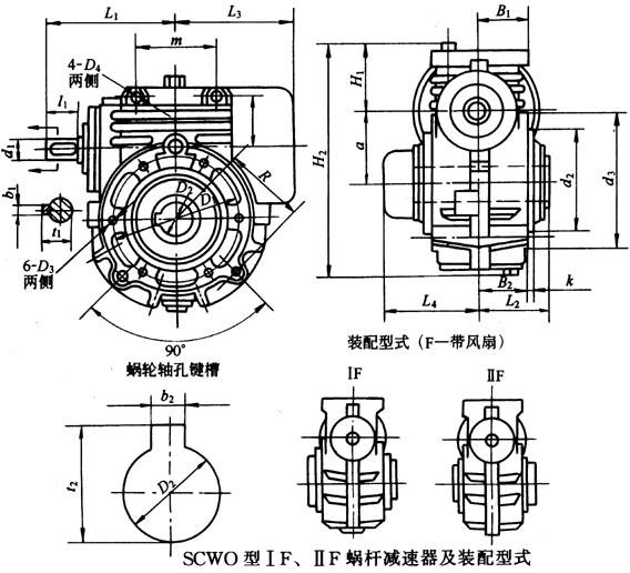 SCWO型減速器I、II裝配型式主要尺寸 /mm